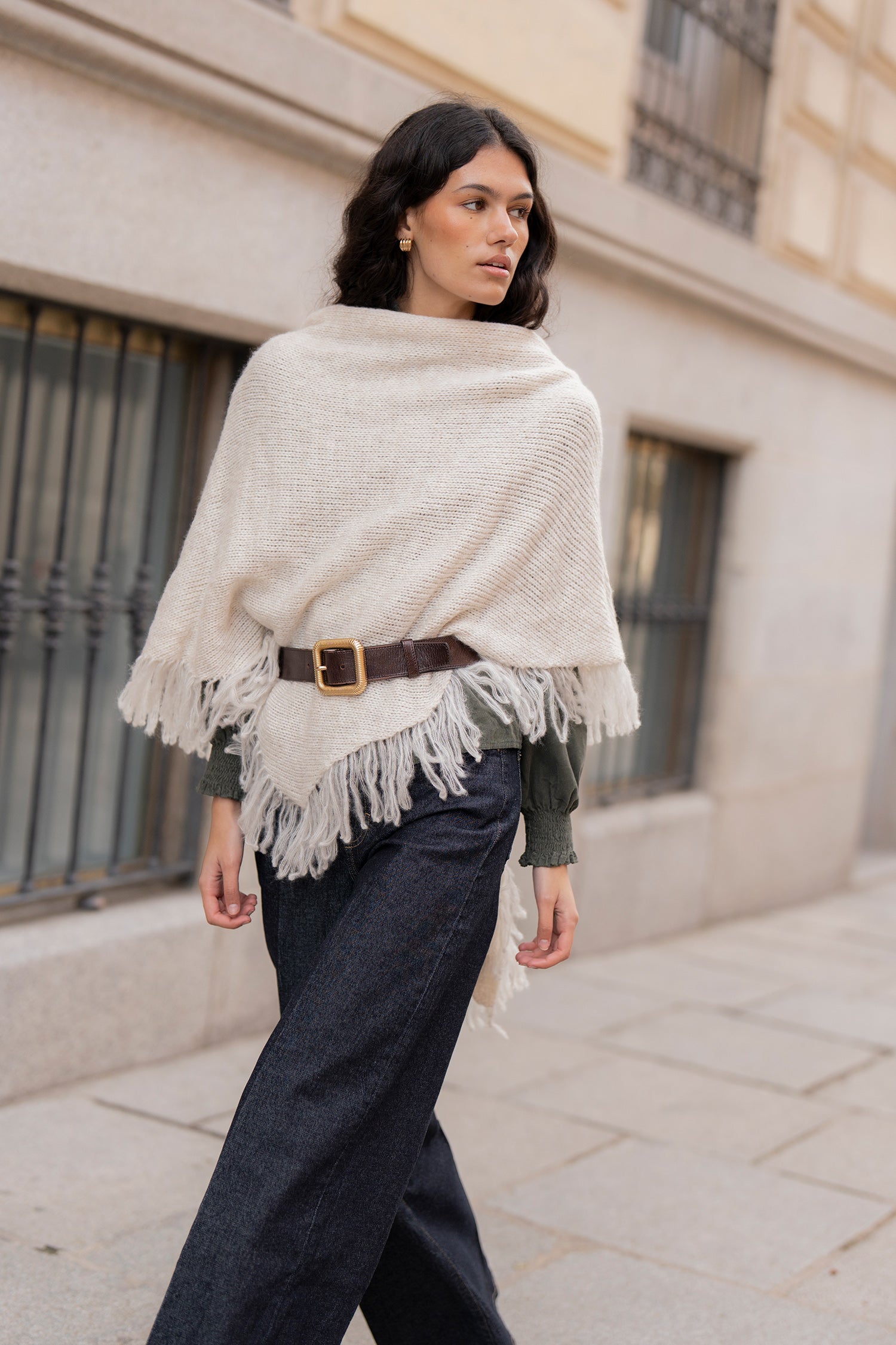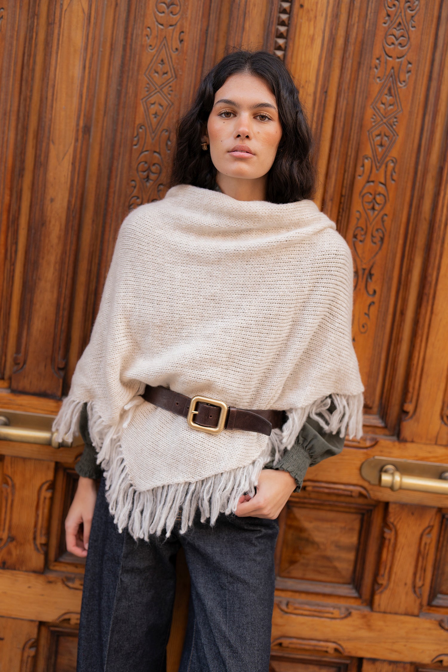Poncho flecos beige, marrón chocolate, berenjena, teja, burdeos.