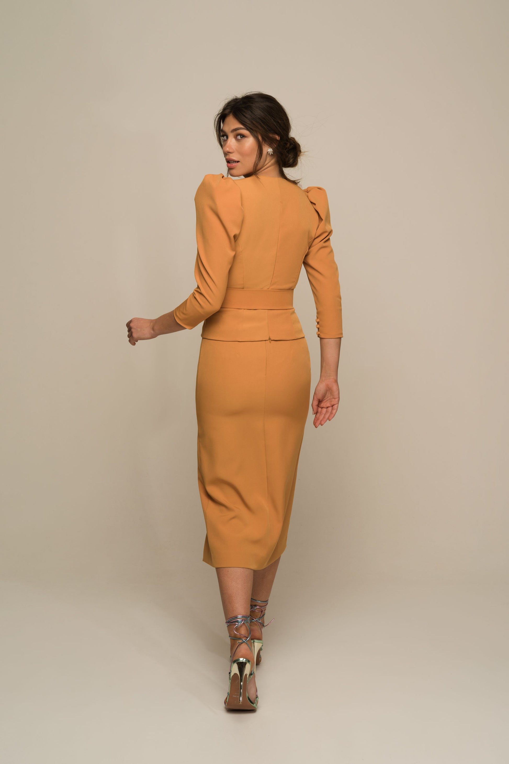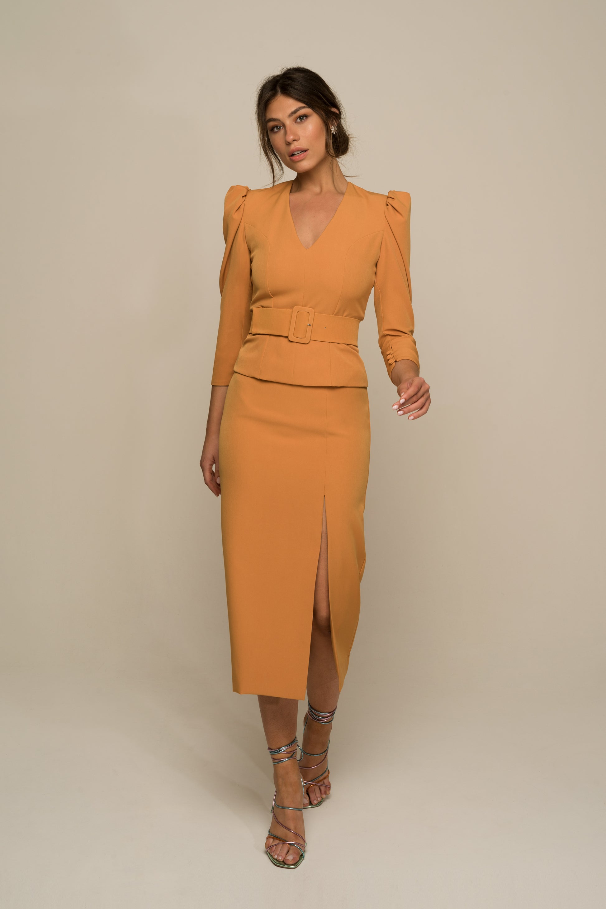 La falda Newton es un diseño 100% hecho en España de estilo midi, con una abertura lateral y una silueta de corte en cintura con acabado. La cremallera invisible se encuentra en lado izquierdo.