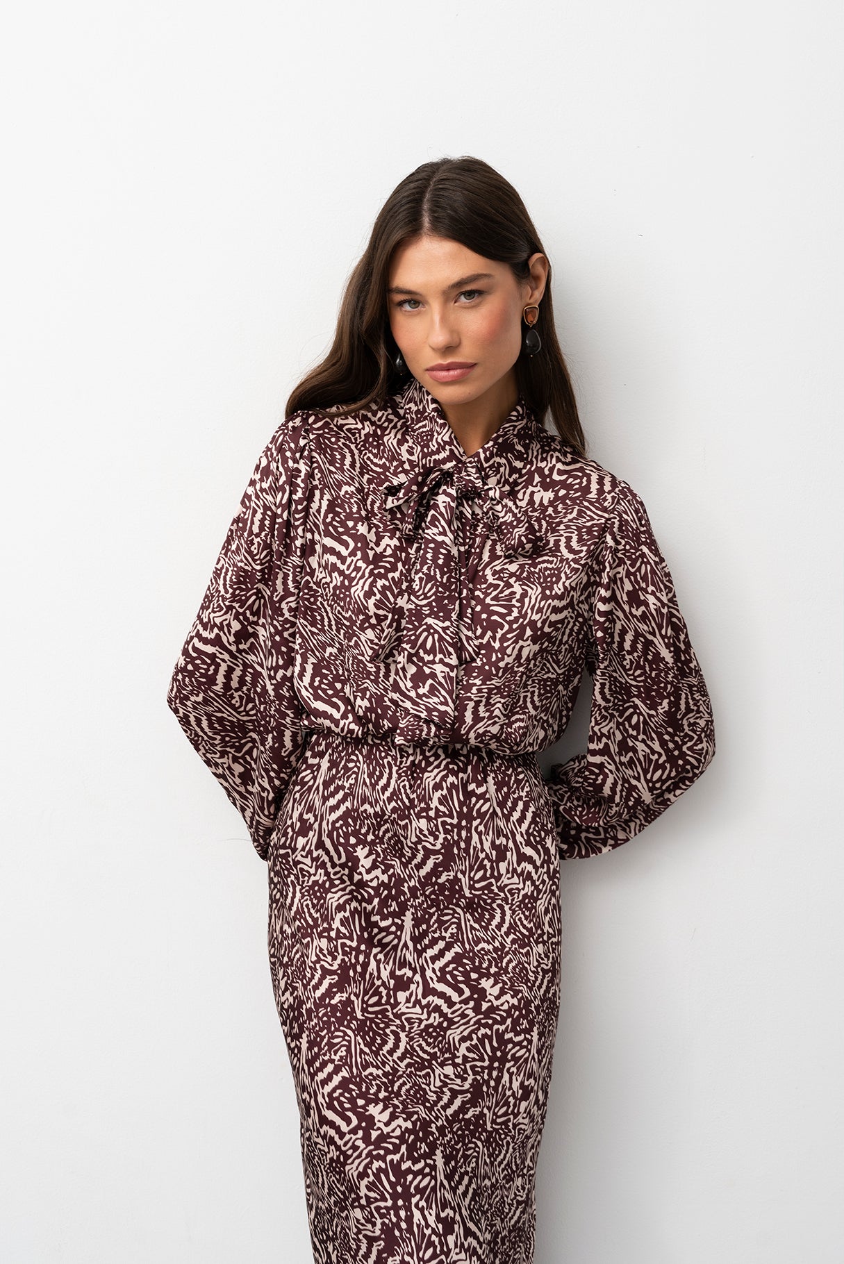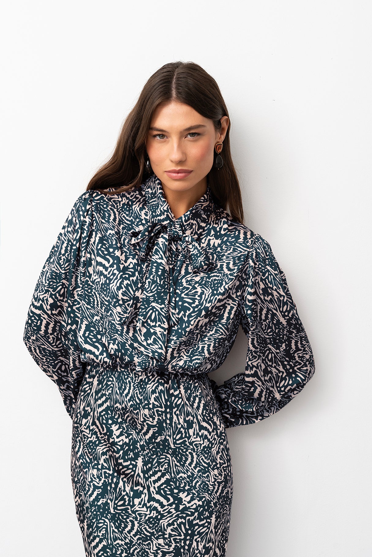 Descripción: Blusa de manga larga Estampada detalle lazada.