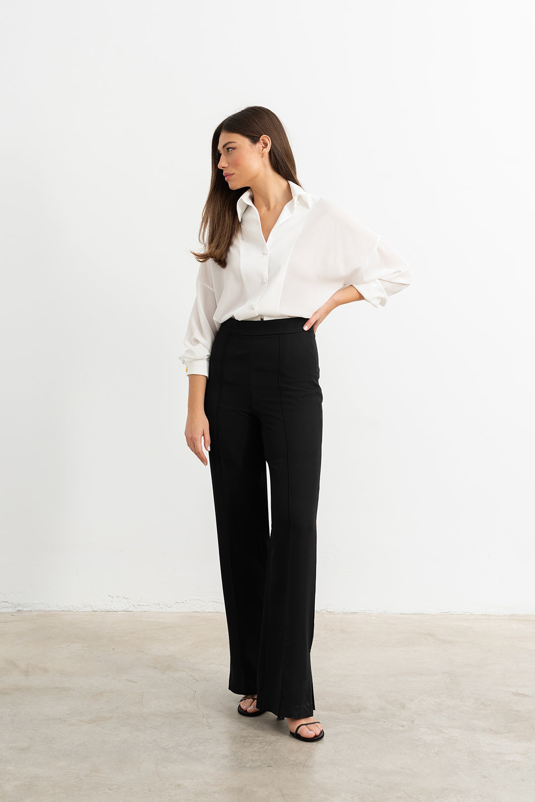 Es una prenda de tiro alto estilo sastre con una apertura en el abajo que le de un toque original a este diseñado tan elegante y sofisticado.