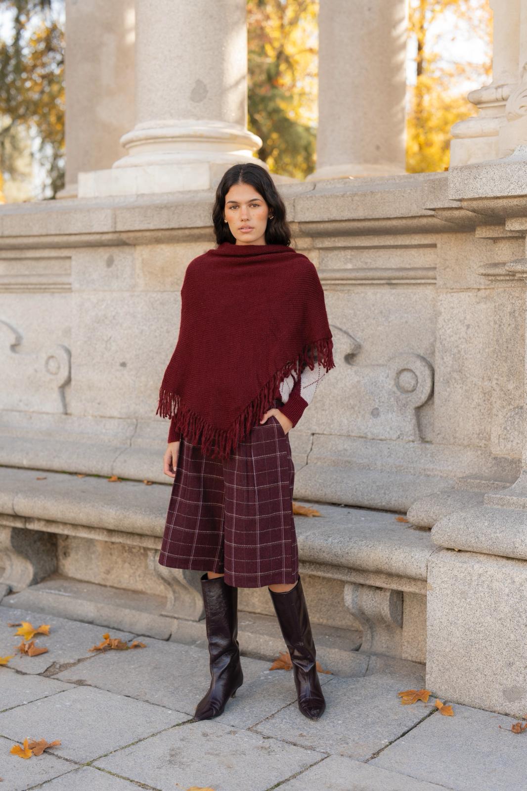Poncho flecos beige, marrón chocolate, berenjena, teja, burdeos.
